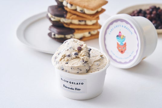 フェアリーケーキフェアの人気スイーツ3種の味わいが、夏の暑い季節にぴったりな冷んやりスイーツとなって新発売いたします。大人気『フェアリークリームウィッチ』の「レーズン生バターサンド」や隠れた人気お菓子「プチカドーはとハート “レモンヨーグルト味のメレンゲ”」などを、SLOW GELATOがアイスクリームやジェラートで表現。SLOW GELATOの人気フレーバー2種を加え、全5種のアイスがラインナップいたします。