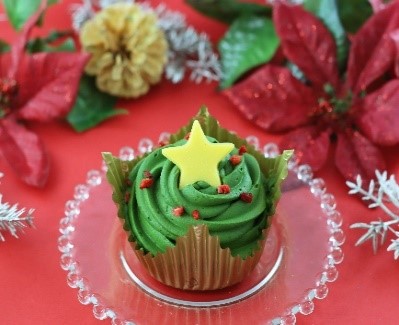 西尾の抹茶を使用した抹茶モンブランクリームと、黄色の星型チョコレートのトッピングでクリスマスツリー風に仕立てた抹茶モンブランです。