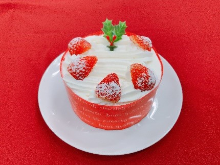 北海道生クリームブレンドの、なめらかな口どけが自慢のホイップクリームを使用した4号サイズの苺のショートケーキです。フレッシュな苺を5枚トッピングし、柊を飾り付けました。