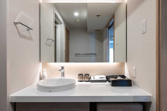機能面では、それぞれ独立した洗面台、トイレ、バスルームの新装、個別空調への変更、サッシ交換による断熱、遮音性の向上、ベッドは上質な寝心地で定評のある「Serta(サータ)」のセミダブルサイズを採用するなど、居住性への充実を図りました。最大 6 名までご滞在が可能、利用シーンや人数に応じてフレキシブルにご利用いただけますので、ご家族や友人グループなど幅広いシーンでのご旅行におすすめです。また、和室の雰囲気とベッドの快適性を兼ね備えた和洋室は、海外のお客様からも人気が高い部屋タイプです。和洋室は全 48 室、本館 5 階から 8 階に位置し、2024 年 3 月には 6 階の全 12 室を改装済み、また 7 月下旬には 6・7 階に続き 8 階全 12 室もリニューアルオープン予定です。