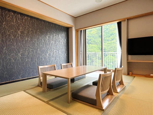 国際興業グループの富士屋ホテル株式会社(本社/神奈川県足柄下郡箱根町宮ノ下 359/代表取締役 社長 安藤 昭)では、湯本富士屋ホテル(神奈川県足柄下郡箱根町湯本 256-1/取締役 総支配人 勝俣 克教/yumotofujiya.jp)にて本館 7 階フロア・和洋室全 12 室の改装を実施し、2024 年 6 月よりリニューアルオープンいたしました。コンセプトは「癒しを紡ぐ部屋」。7 階は「清風」をテーマに、清々しい淡い色調に自然の息吹が感じられるデザインをあしらいました。48 平方メートル の広々とした開放感ある空間で、窓からは四季折々の箱根の景色をお楽しみいただけます。
