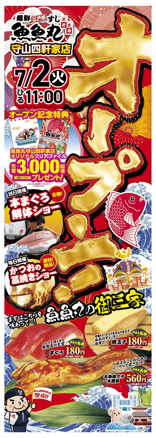 また、先着3,000名のお客様にはオープン記念特典として、守山区に因んだ絵柄のクリアファイルをプレゼントいたします。