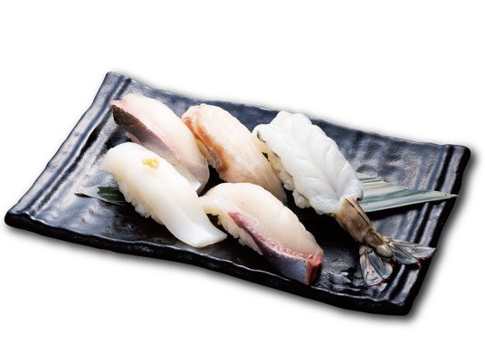 しまあじ、すずき昆布〆、天然大車えび、むらさきいか、活〆かんぱちが1貫ずつ楽しめるので、最後まで飽きずにお召し上がりいただけます!