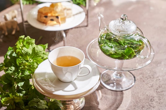 ウェルカムティーには、弓削牧場直送のスペアミントなどを用いたオリジナルブレンドのハーブティーをご用意。その後はザ・リッツ・カールトン大阪オリジナルブレンドティー、など5種類の紅茶や、コーヒーなどフリーフローでお好きなだけお楽しみいただけます。