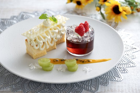 ・チーズケーキとハスカップのゼリー 2,300円(コーヒー、紅茶のいずれか付)