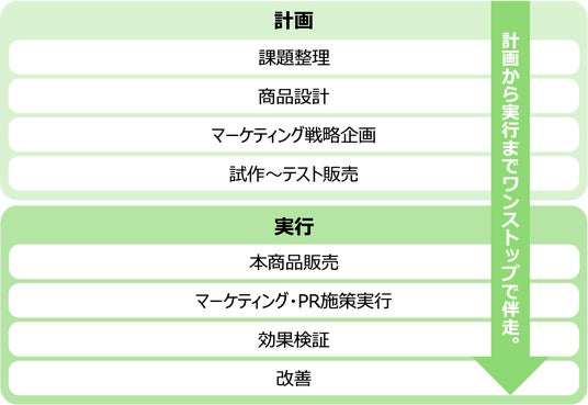 企業のマーケティング支援や商品開発・プロデュースを行う「しかけ株式会社」「SINCOPE株式会社」の2社が商品開発からプロモーションまでワンストップでサポート。