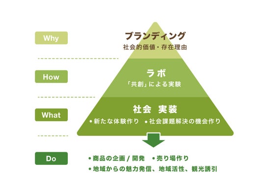地域の魅力をどのように伝えるかをデザインし、モノに落とし込む。そのモノを介して魅力を伝えるコトを生み出し、体験をしてもらう。
