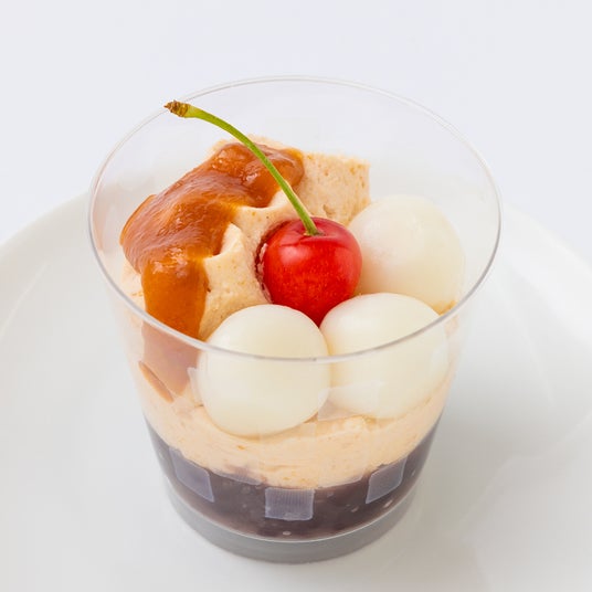 ほのかな酸味のさくらんぼクリームとつぶあんが絶妙にマッチした期間限定のぜんざいです。