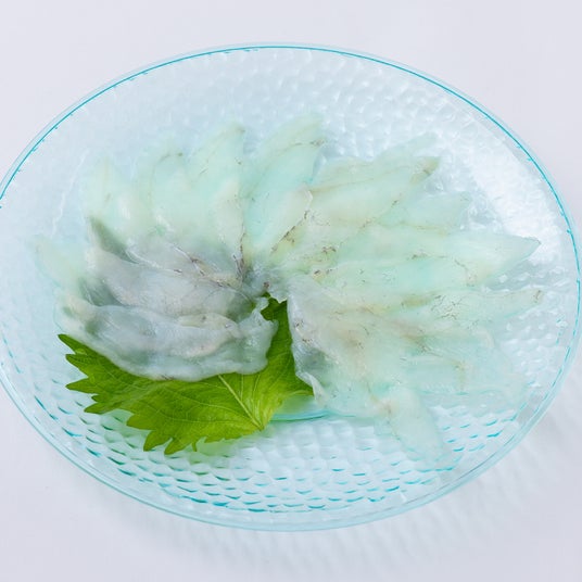 フグの身を極薄に切り、花びらのように盛り付けました。