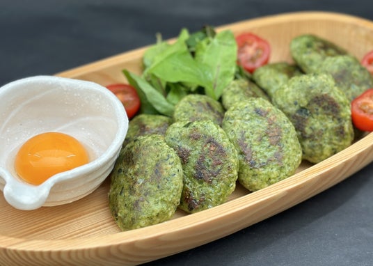 緑黄色野菜と国産鶏肉を使用した「緑黄色野菜三種入りつくね」調理例