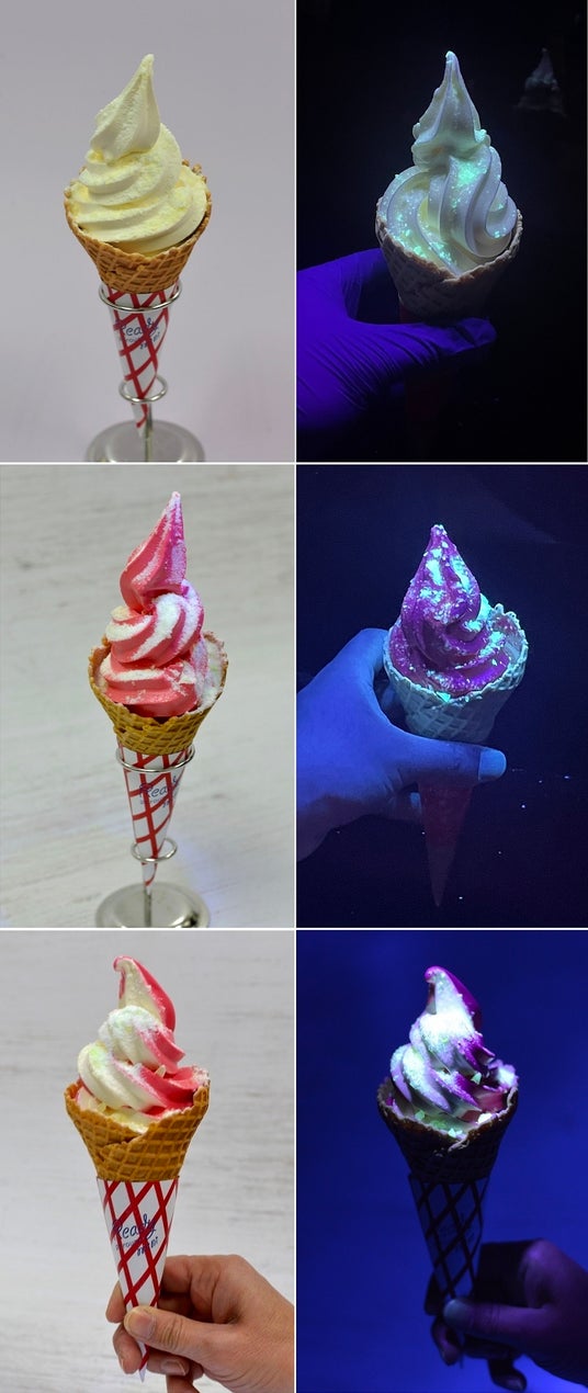 ※ブリリアンスパウダートッピングは各¥700(税込み)※夕刻以降にテイクアウトカウンター横に出現するブラックライトが点いた「ブリリアンスボックス」に入れると光ります。