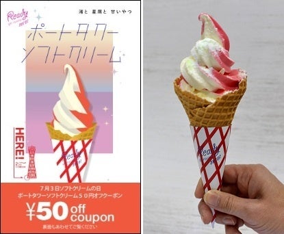 配布物/「ソフトクリームの日」2024年7月3日(水)1日限定「神戸ポートタワーソフトクリーム」50円オフクーポン券(おひとり1枚)※先着順・無くなり次第配布終了。