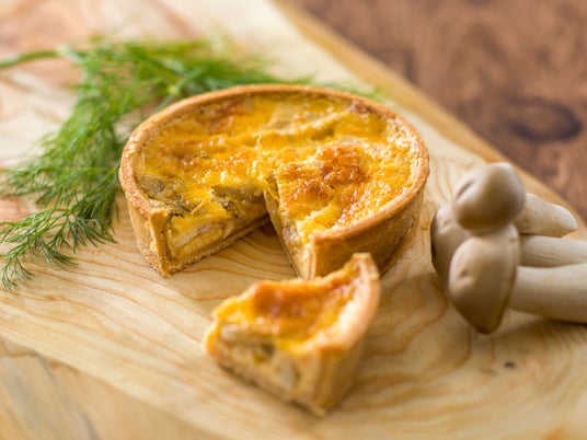 フランスの家庭料理であるキッシュは、茸とベーコンを入れ、秋の味覚を感じる一品に。