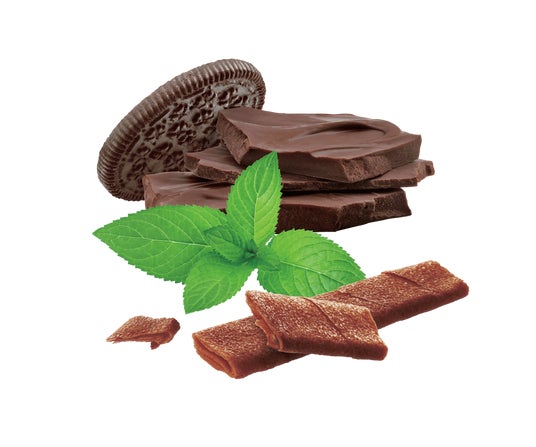 ココアクッキー、ビターチョコレートコーティング、ココアフィアンティーヌをミントアイスクリームと組み合わせることで、食べ応えのある贅沢なバーに仕上げました。