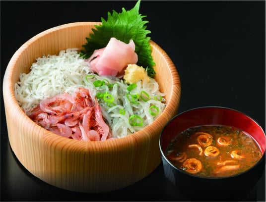 駿河湾でとれたしらすやまぐろ、かつおを使った海鮮丼をお楽しみいただけます。