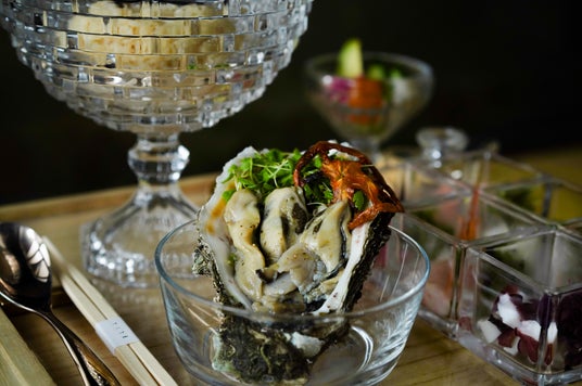 「岩ガキは生で食べるのが一番美味しい」とされていますが、TILEでは贅沢に牡蠣を丸ごとコンフィにしました。低温のオイルで薄っすらと火が入った岩ガキは、生に比べて食べやすく、食感も損なわず、旨味も凝縮されています。夏に旬を迎える岩牡蠣の濃厚な味とプリプリ食感を、是非お試しください。
