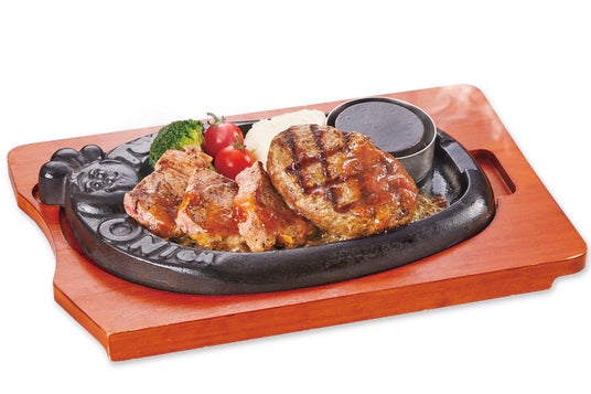 USカットサーロインステーキ&ハンバーグカットしたサーロインステーキと、オリジナルハンバーグのコンビメニューです。