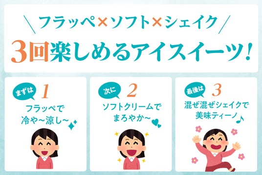 まずに最初は上層のフラッペを。次に下層ののソフトクリームを食べてから、最後に二つの層を混ぜてシェイクしてお召し上がりください。