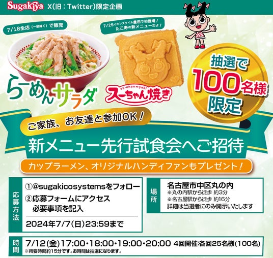 詳細はスガキヤ公式SNSで発信いたしますので下記よりご確認ください。
