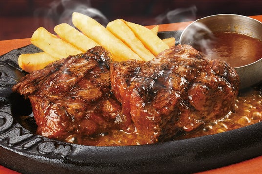 【ファミリーレストランでは珍しい店内手切り】ビフテキ牛一頭から少量しかとれない希少部位「ブレードミート」を使用したステーキ。肉厚ジューシーなブレードミートは肉の旨味がよく脂が程よくあり、噛むほどに甘みを感じることができます。