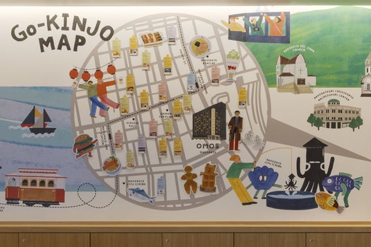 OMOのスタッフが、ガイドブックには載っていないご近所の情報を集めた「ご近所マップ」では、函館市民行きつけのお店や、知られざる路地裏の名店を知ることができます。OMO5函館のご近所マップは函館の街全体のランドマークが描かれ、フォトスポットにもなります。