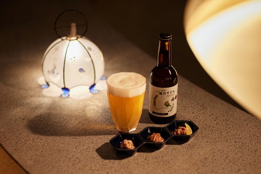 夜の函館を彩るのは函館山の夜景だけではなく、イカ釣り漁船の漁火も名物です。漁火をイメージしライトアップした屋外の空間で、ご近所にあるジャズ喫茶のマスター厳選のジャズレコードを流し、アフター夜景やアフター温泉のナイトタイムを演出します。さらに、ご近所さんのお酒とおつまみをセレクトしたオリジナルの晩酌セットを提供します。晩酌セットは、昔ながらの木樽製法を引き継ぐ「小田島水産食品」の塩辛3種と、函館の新進気鋭のビール醸造所「ozigibrewing函館麦酒醸造所」のクラフトビールのペアリングです。優しい灯りに包まれながら、寛ぐことができます。