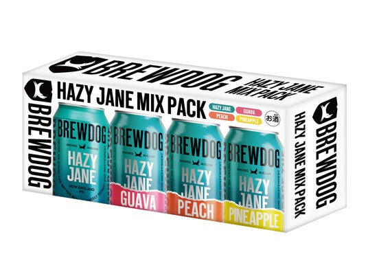 今回日本に初上陸する「ヘイジージェーン ピーチ」「ヘイジージェーン パイナップル」の2品は、2024年7月8日(月)より本州・四国の「イオン」「イオンスタイル」「イオンリカー」にて限定発売されることが決定いたしました。また発売にあたり、ブリュードッグのフラッグシップ商品の1つである「ヘイジージェーン」や、昨年日本初上陸を果たして大変好評を博した「ヘイジージェーン グアヴァ」もセットになった「ブリュードッグヘイジージェーン4缶アソートパック」も同企業限定で発売いたします。ヘイジージェーンのフレーバーを余すことなく楽しむことが出来るパックです。これからの本格的なアウトドアシーズンに向けて、これまでBREWDOGを飲用したことのある方もまだの方も、日本上陸のこのタイミングでヘイジージェーン シリーズを手に取ってみないか。