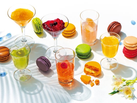 季節限定フレーバーを含めたカラフルなマカロンと、果肉の瑞々しさが味わえる6種のフルーツゼリーとの夏らしいセット。甘夏・桃・ぶどう・さくらんぼ・ブルーベリー・マングーの6種のゼリーと、ラフランス・マングー パッション・ミックスベリー・あまおう・ピスターシュ・ヴァニーユ・ショコラ・シトロンの8種のマカロン入り。※販売期間:~8月中旬予定