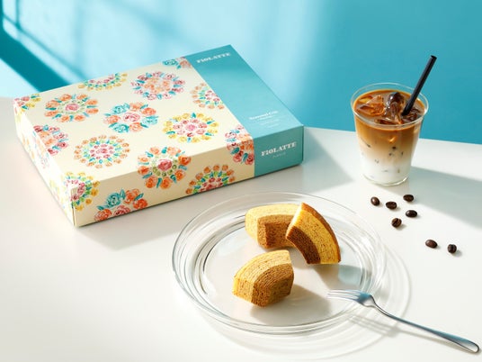 丁寧に焼き上げたバームクーヘンは、華やかなカフェラテの薫りをシンプルに愉しめる上品な仕上がりに。しっとりとした生地には、コーヒーの程よい苦味とミルクのやさしい甘味を閉じ込め、見た目も楽しめる2層仕立てにいたしました。ふんわりと広がるカフェラテ味は、フィオラッテならではの味わいです。※販売期間:~8月末予定