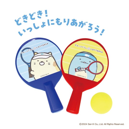 「すみっコぐらしおもちゃ」はピンポン対決を楽しめる「たいせん!すみっコピンポン」、外遊びにぴったりな「ゴーゴー!すみっコサッカー」、組み立てて回して遊べる「くるっと♪すみっコダンスこま」の3種類から1種類をお選びいただけます。