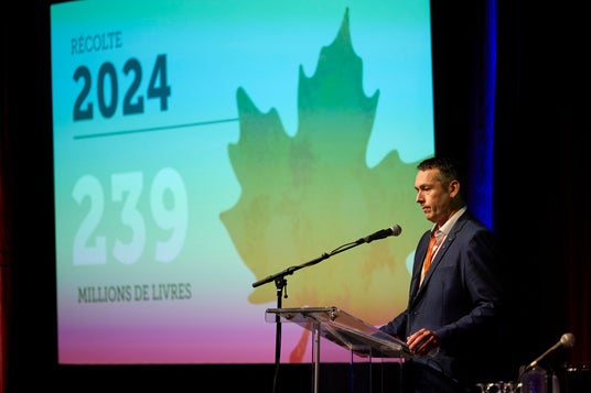 ケベック州産メープルシロップの記録的な収穫量について、カナダのドゥルモンヴィルで行われたケベック・メープルシロップ生産者協会(QMSP)の年次総会で発表されました。今年のシュガーブッシュ(砂糖カエデの森)で費やした努力により、協会の第三者研究機関であるGroupe AGECOによる電話調査でまとめられた2024年の公式の数値で、収穫の総重量が2億3900万ポンド、平均生産量はタップ1つあたり4.47ポンド、総額は約7.5億ドルにものぼりました。