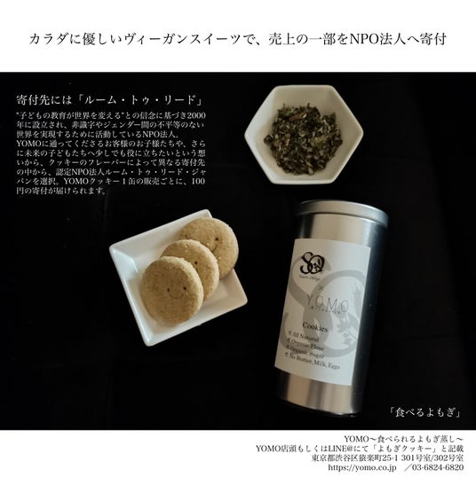 代官山駅徒歩3分のYOMO~食べられるよもぎ蒸し~にて、ご自身へのご褒美や大切な方への特別なギフトとしてよもぎクッキー「食べるよもぎ」を7/7(日)より発売開始。ヴィーガンスイーツを手掛けるSweets Oblige by Asa & Lisaとコラボし、YOMO店頭にて購入可能。今後は遠方の方にも楽しんでいただけるようECサイトでの販売も予定している。