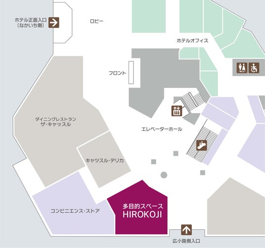 秋田キャッスルホテル(秋田県秋田市中通、代表取締役社長 岸本洋喜)は、2024年7月7日(日)に「多目的スペース HIROKOJI」をオープンいたします。場所は、ホテル1階エリアの広小路側エントランスそばに位置し、秋田市中心部のメインストリートである広小路に面した好立地となっています。ホテルロビーからも気軽に足を運ぶことができる明るく開放的な空間で、展示会や催事など、幅広い用途にご利用いただけます。これまで当ホテルの1階エリアには一般貸出可能な催事会場がなく、今回のオープンで新たに1階でのイベント開催等が可能になります。