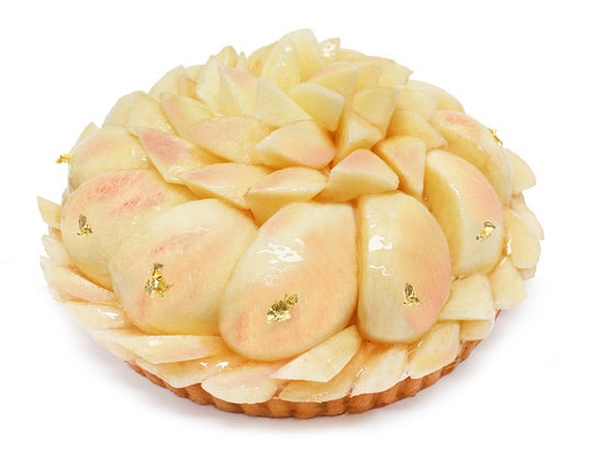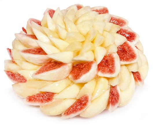 果汁たっぷりの桃と、独特な食感のいちじくをあわせて、美しく飾り付けました。コクのあるカスタードクリームのベースと共に楽しめます。