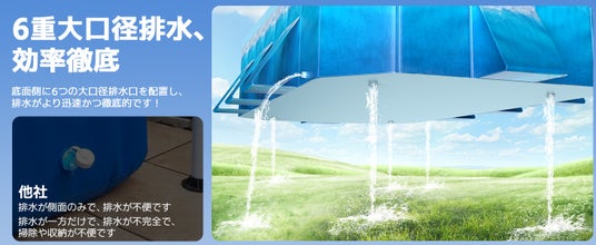 Alwgreenは常にユーザーの利便性を考慮し、6つの大きな排水口を設置しました。排水速度が速く、簡単に排水でき、清掃と収納も楽々です。空気入れ不要のプールは簡単に折りたたむことができ、コンパクトに収納できます。