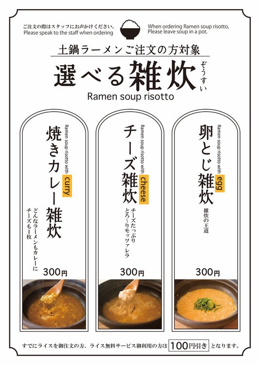 この度、パリでも同じ味が同じ品質で提供できるようにしてきた各種の仕組みで、長野県内を飲食から盛り上げるために長野県限定で国内フランチャイズ募集を開始します。たけさんは、豚骨味噌、動物性を使わないヴィーガン、担々麺などを土鍋で提供するのがポイント。土鍋にスープを残し、雑炊を追加オーダー出来るなど特徴のあるラーメン店です。