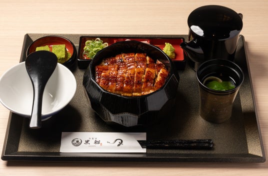 国内向けブランド「黒船」のうな重<特上>2,600円(店舗により価格が異なる場合がございます)こだわりの菊模様のアイボリーのお重が美しい。