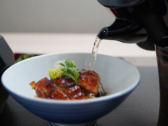 出汁をかけて、お茶漬け風に召し上がる。