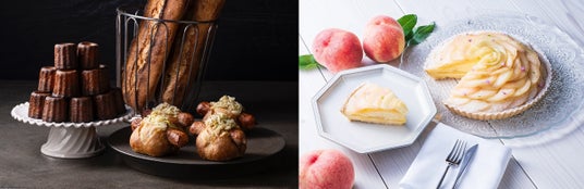 「?井屋ホテル」は、2024年7月17日(水)から7月23日(火)まで、本館地下1階食料品催会場にて、白井屋ザ・ベーカリー自慢のキタノカオリを使ったパンドミ(食パン)やバゲット、クロワッサンやクイニーアマン、人気のカヌレをはじめ、白井屋メインダイニングのシェフ、片山ひろが考案した惣菜パンも販売します。白井屋ザ・パティスリーからは旬の桃のタルト、完熟マンゴーのタルト、メロンのタルト、さらに3種のパウンドケーキをご用意します。期間中は白井屋ザ・レストランのシェフ、片山ひろやパティシエによる実演もお楽しみいただけます。