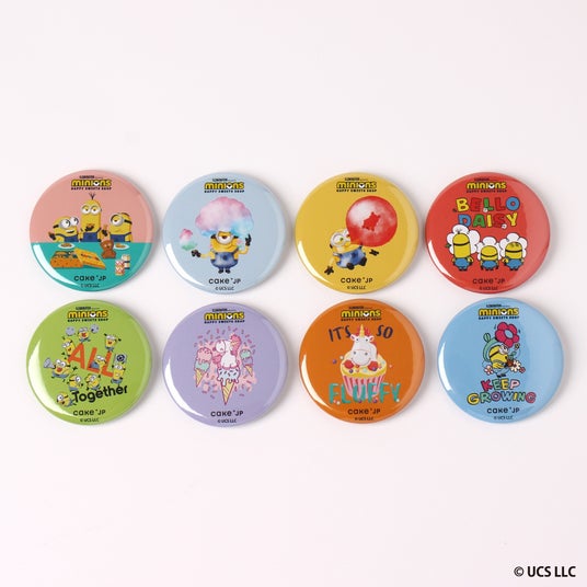 ・デザイン:スイーツショップ/デイジー/ベターウェイズアヘッド/フラッフィー/ベロ!/チルアウト/キャンディ/ポップコーン■『MINIONS HAPPY SWEETS SHOP』販売商品(グッズ)<『MINIONS HAPPY SWEETS SHOP』ミニオン オリジナル缶バッジ(ランダム全8種)>
