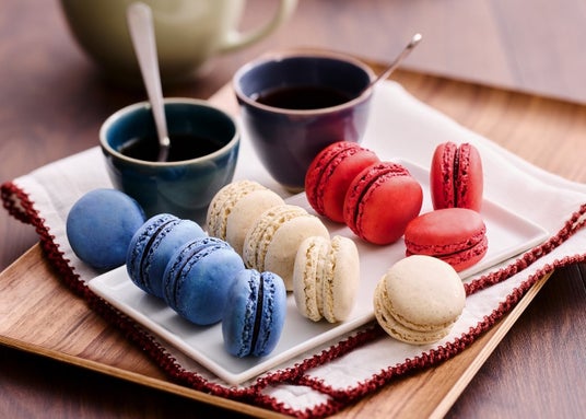 写真は、「トリコロール・マカロン(カシス、バニラ、ストロベリー)」