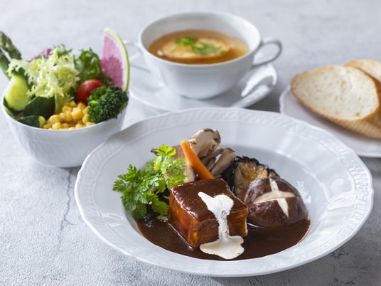 ホテル特製ビーフシチューは、夕食時にバイキング会場でご提供しており、創業以来のレシピをそのまま使用した自慢の一品でございます。コトコトとじっくり煮込んだ深みのある味わいでございます。