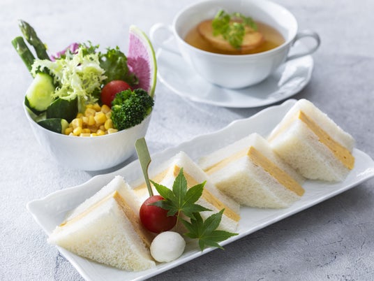 「だし巻き玉子」は、朝食時にバイキング会場ライブキッチンで、丁寧に焼き上げております。フワフワのだし巻き玉子は、朝食の定番!一番人気の一品をサンドイッチとしてお召し上がりいただけます。