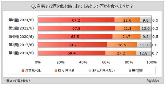 マイボイスコム株式会社(東京都千代田区、代表取締役社長:高井和久)は、6回目となる『おつまみ』に関するインターネット調査を2024年6月1日~7日に実施しました。