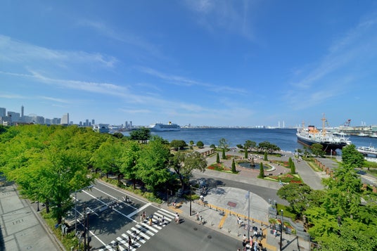 横浜港を一望できる店内からは、青い海と空をご覧いただけます