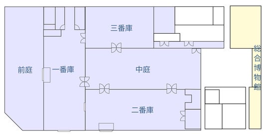 当該施設は、総床面積1,726平方メートル という広大な敷地を有し、一番庫・二番庫・三番庫・中庭・前庭というエリアに分かれてり、現在の予定では以下のように運営を想定しています。