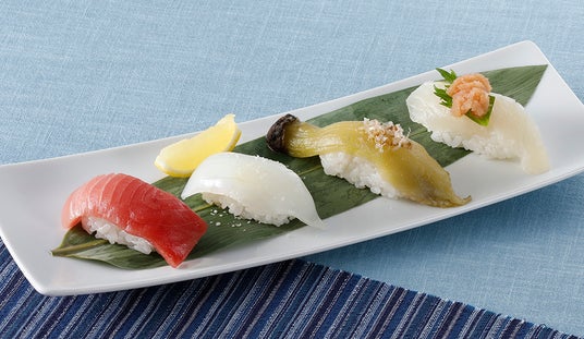 夏メニューとしても販売されている『焼きなす』や人気の『本まぐろ中とろ』が盛り込まれたAセット、女性に人気の『アボカドサーモン』、炙ったほたてを韓国海苔で包み、旨辛コチュジャンで味付けをした『炙りほたての海苔包み』など創作寿司が盛り込まれたBセット、サーモンに北海道いくらを乗せた『サーモン北海道いくらのせ』、暑い夏にぴったりの人気ネタ『うなぎ』が盛り込まれたCセットの3種類を販売いたします。
