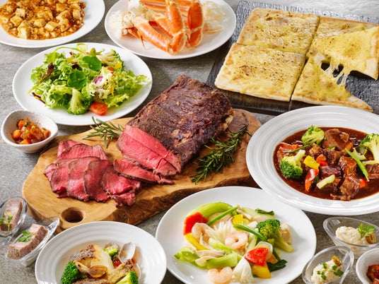 北海道の食材を使ったフレンチメニューを中心に、海鮮や中華、デザートなど数々のお料理をブッフェスタイルで提供する夕食ブッフェ。夏は、赤ピーマンやトマト、ナス、ズッキーニなど新鮮な野菜を沢山使った期間限定メニューが登場。海の幸も夏に旬を迎えるものが多く、有珠漁港のウニは7月に解禁し、アサリも水温の低い北海道では夏に一番美味しくなります。