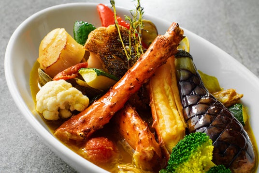 魚介の旨味を閉じ込めたマイルドなスープカレー。たっぷりの具材と濃厚なカニの旨味が口の中に広がります。(7月限定ランチアラカルト 提供時間 11:00-15:00)