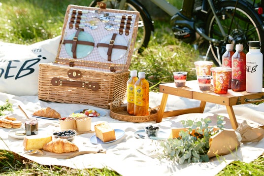 星野リゾート BEB5土浦では、農園でブルーベリーの収穫体験やモーニングを楽しむ「ブルーベリーサイクルピクニック」を体験される方やレンタサイクルをご利用の方に、「午後の紅茶」を楽しめるピクニックグッズをお渡しします。自然の中でティータイムをお楽しみいただけます。
